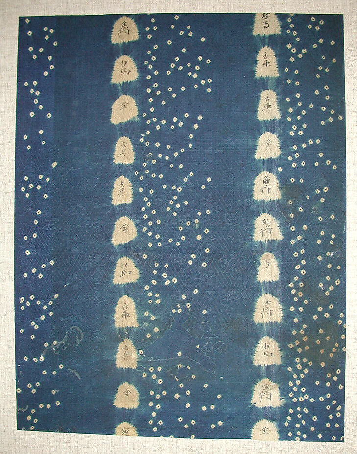- Medium: Ground of dark blue float-patterned plain-wave (saya)