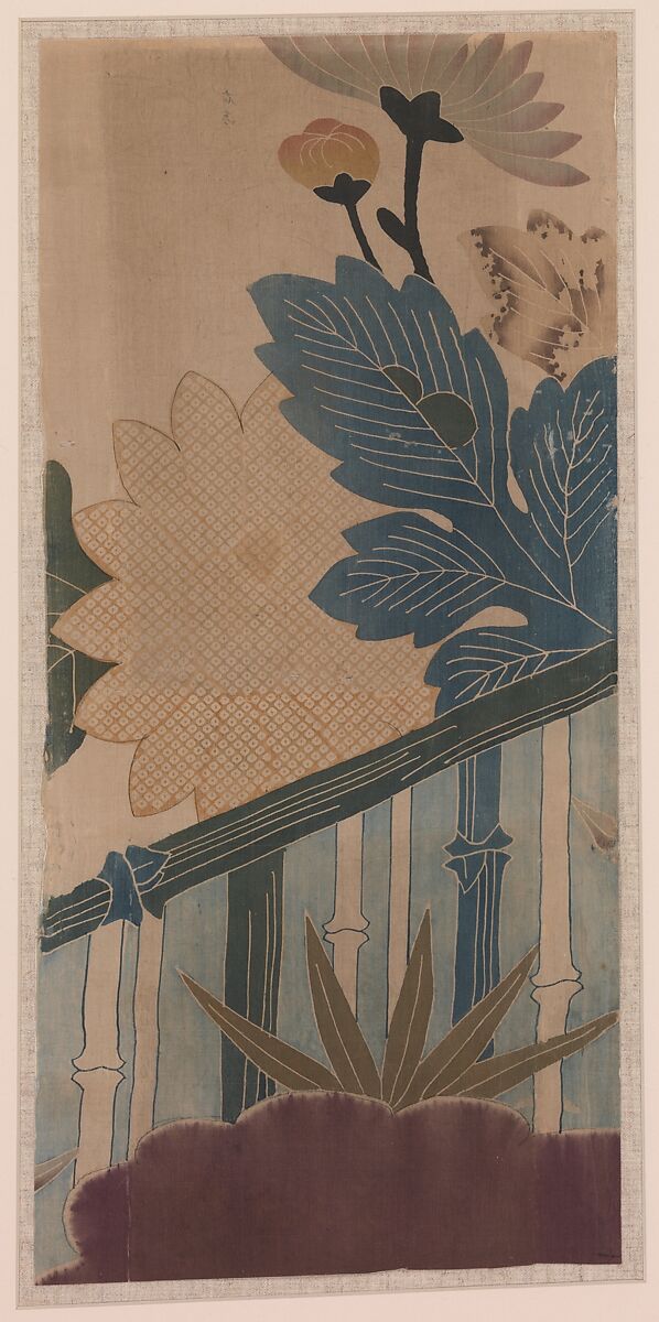 - Medium: Stitch-and paste-resist-dyed and painted float-patterned plain-weave silk (saya)