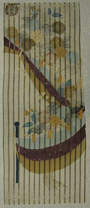 - Medium:Ground of white crepe (chirimen) with dark stripes