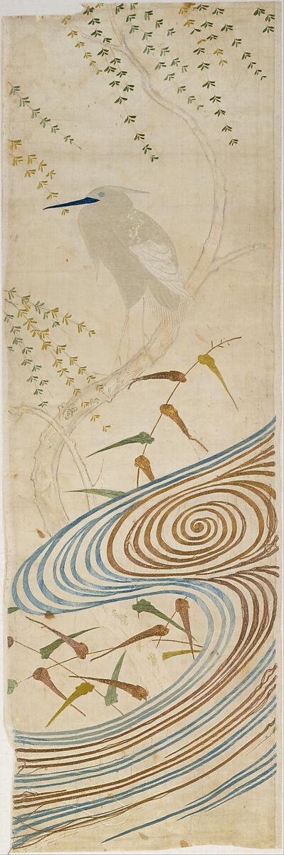 - Title:Piece from a Noh Costume (Nuihaku) with Egret (Sagi) and Willow Tree