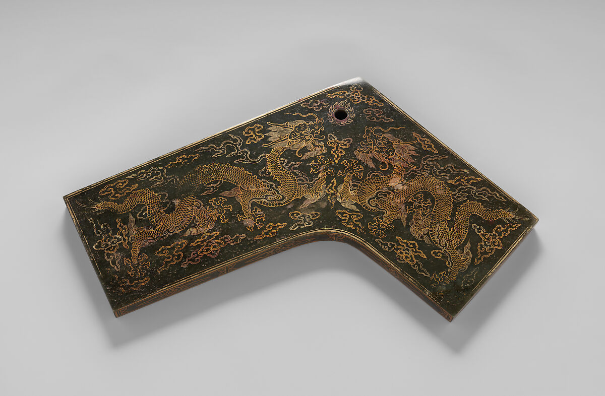 The manufacture of sonorous stones for decoration or music from carved or cut jade may be traced to the end of the late Eastern Zhou period (ca. 771–221 B.C.) and followed in a tradition of L-shaped stone chimes known from about 1700 B.C. The great importance of sonorous substances such as wood and stone among the percussion instruments of East Asia stems from the religious belief that, through this vibrating matter, nature itself speaks to the human ear. Highly polished slabs were decorated with tiger, lion, or dragon motifs.