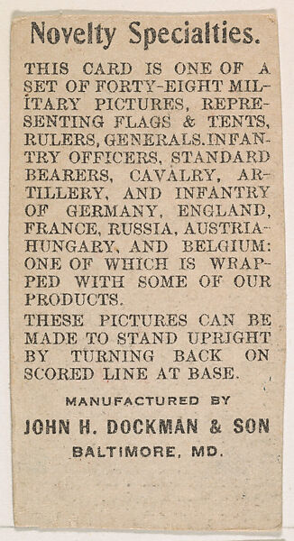 - Title: Example of John H. Dockman & Son Card Verso, from the Military Caramels series (E5)