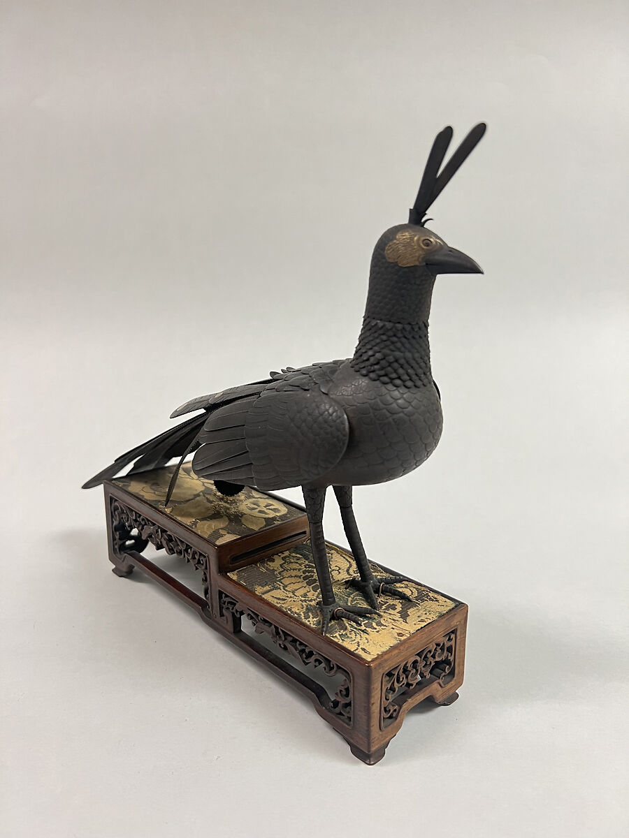 - Medium: Bronze, gold or brass inlay, teakwood stand