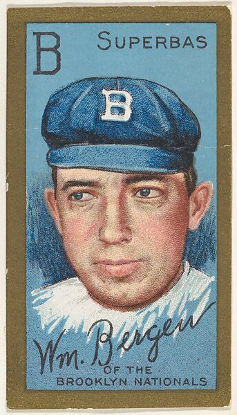 - Title: William Bergen, Brooklyn Superbas, National League, from the "Baseball Series" (Gold Borders) set (T205) issued by the American Tobacco Company