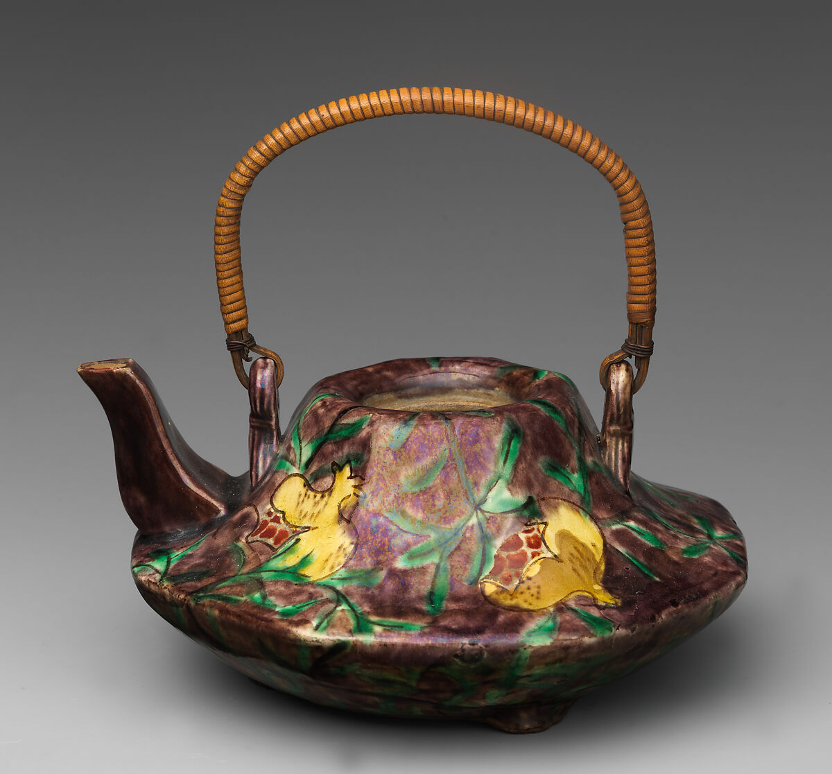 - Medium: Pottery decorated with polychrome enamels; straw handle (Meppotani ware)