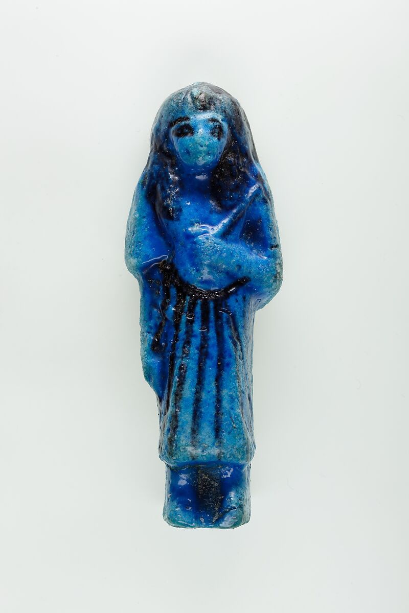 Almost 400 small funerary figures known as shabtis were found with Nauny’s burial. These can be seen as avatars, meant to carry out agricultural labor on Nauny’s behalf in the afterlife. Of the 393 shabtis discovered, 355 were workers and 37 were overseers like this one. Recognizable by their long kilts and the flails that they hold, the overseer figures were meant to supervise the worker shabtis (see for example <a href="https://www.metmuseum.org/art/collection/search/625679">30.3.26.10</a>) that worked on Nauny’s behalf in the afterlife. On the back pillar, Nauny is named as as a king’s daughter and called an “illuminated Osiris,” transformed through the process of mummification and identified with the principal god of the dead, then reanimated by the light of the sun god as he traveled through the Netherworld each night. Nauny’s shabtis were divided between seven boxes. Five of these, with their shabtis, were given to The Met, while two were sent to the Egyptian Museum in Cairo.