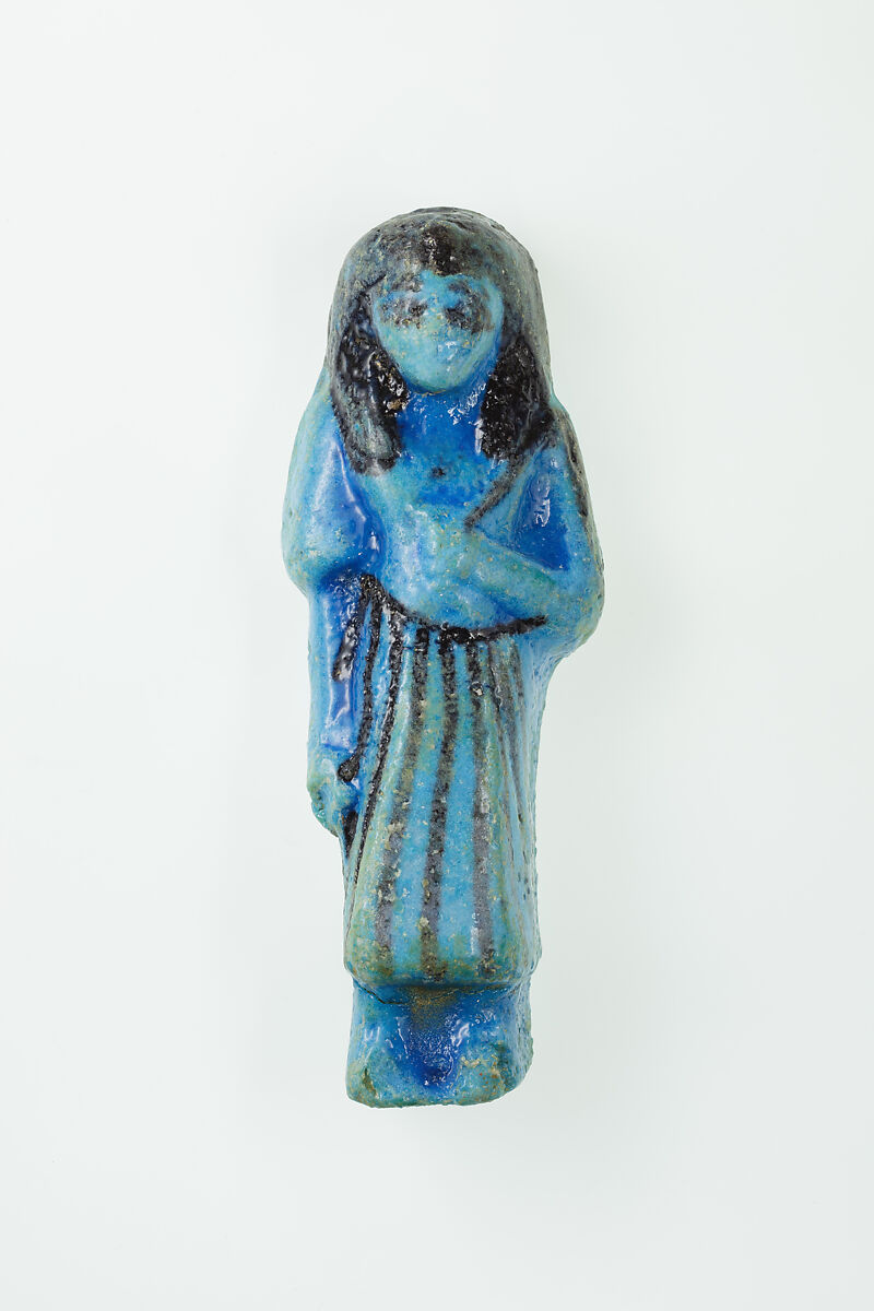 Almost 400 small funerary figures known as shabtis were found with Nauny’s burial. These can be seen as avatars, meant to carry out agricultural labor on Nauny’s behalf in the afterlife. Of the 393 shabtis discovered, 355 were workers and 37 were overseers like this one. Recognizable by their long kilts and the flails that they hold, the overseer figures were meant to supervise the worker shabtis (see for example <a href="https://www.metmuseum.org/art/collection/search/625679">30.3.26.10</a>) that worked on Nauny’s behalf in the afterlife. On the back pillar, Nauny is named as as a king’s daughter and called an “illuminated Osiris,” transformed through the process of mummification and identified with the principal god of the dead, then reanimated by the light of the sun god as he traveled through the Netherworld each night. Nauny’s shabtis were divided between seven boxes. Five of these, with their shabtis, were given to The Met, while two were sent to the Egyptian Museum in Cairo.