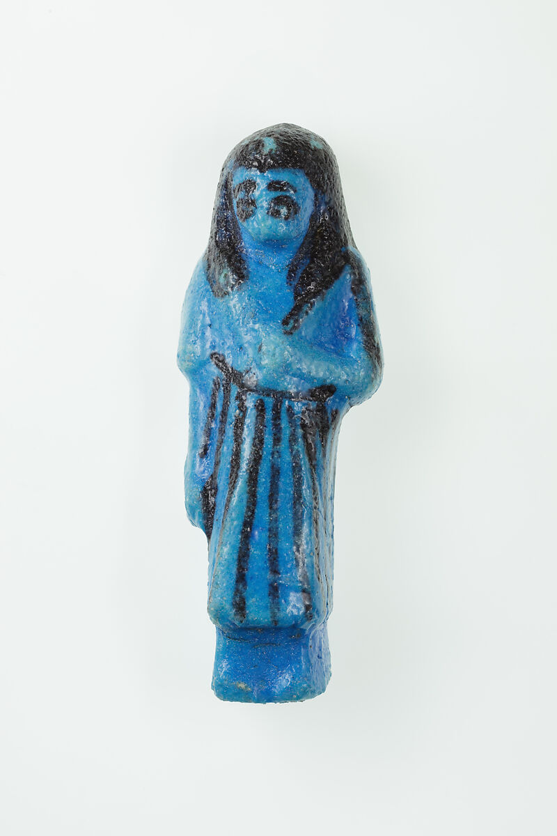 Almost 400 small funerary figures known as shabtis were found with Nauny’s burial. These can be seen as avatars, meant to carry out agricultural labor on Nauny’s behalf in the afterlife. Of the 393 shabtis discovered, 355 were workers and 37 were overseers like this one. Recognizable by their long kilts and the flails that they hold, the overseer figures were meant to supervise the worker shabtis (see for example <a href="https://www.metmuseum.org/art/collection/search/625679">30.3.26.10</a>) that worked on Nauny’s behalf in the afterlife. On the back pillar, Nauny is called an “illuminated Osiris,” transformed through the process of mummification and identified with the principal god of the dead, then reanimated by the light of the sun god as he traveled through the Netherworld each night. Nauny’s shabtis were divided between seven boxes. Five of these, with their shabtis, were given to The Met, while two were sent to the Egyptian Museum in Cairo.