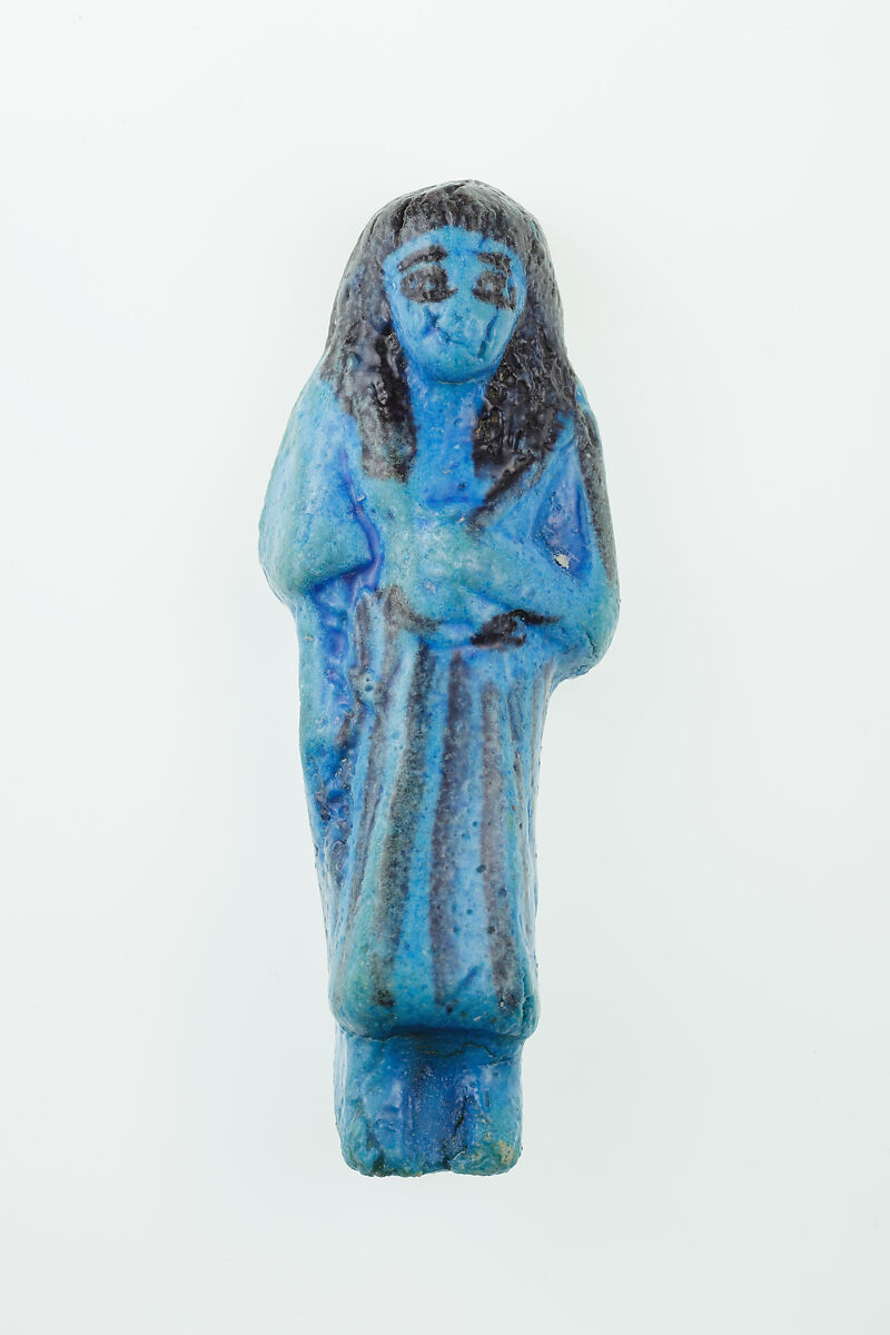 Almost 400 small funerary figures known as shabtis were found with Nauny’s burial. These can be seen as avatars, meant to carry out agricultural labor on Nauny’s behalf in the afterlife. Of the 393 shabtis discovered, 355 were workers and 37 were overseers like this one. Recognizable by their long kilts and the flails that they hold, the overseer figures were meant to supervise the worker shabtis (see for example <a href="https://www.metmuseum.org/art/collection/search/625679">30.3.26.10</a>) that worked on Nauny’s behalf in the afterlife. On the back pillar, Nauny is called an “illuminated Osiris,” transformed through the process of mummification and identified with the principal god of the dead, then reanimated by the light of the sun god as he traveled through the Netherworld each night. Nauny’s shabtis were divided between seven boxes. Five of these, with their shabtis, were given to The Met, while two were sent to the Egyptian Museum in Cairo.