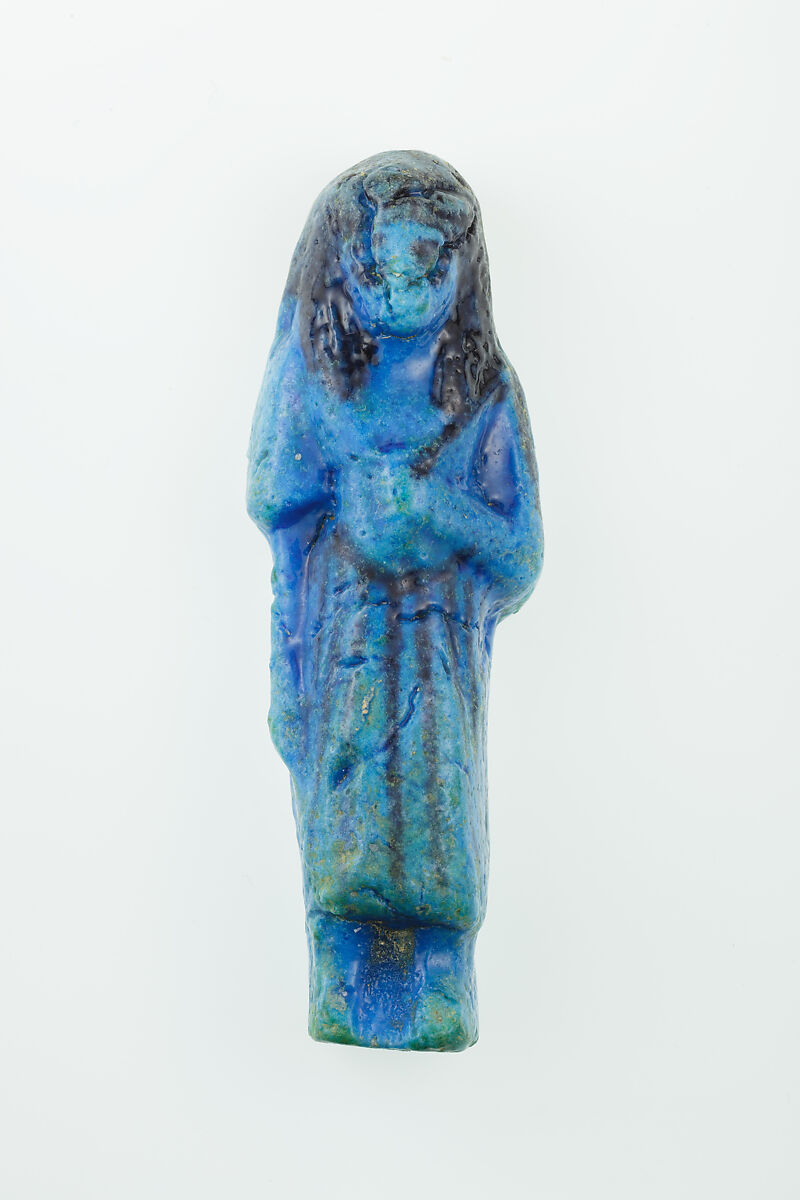 Almost 400 small funerary figures known as shabtis were found with Nauny’s burial. These can be seen as avatars, meant to carry out agricultural labor on Nauny’s behalf in the afterlife. Of the 393 shabtis discovered, 355 were workers and 37 were overseers like this one. Recognizable by their long kilts and the flails that they hold, the overseer figures were meant to supervise the worker shabtis (see for example <a href="https://www.metmuseum.org/art/collection/search/625679">30.3.26.10</a>) that worked on Nauny’s behalf in the afterlife. On the back pillar, Nauny is called a king's daughter, and an “Osiris,” transformed through the process of mummification and identified with the principal god of the dead. Nauny’s shabtis were divided between seven boxes. Five of these, with their shabtis, were given to The Met, while two were sent to the Egyptian Museum in Cairo.