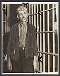 The presence of prison bars dominates this press photographs of a recently booked inmate. Frank Smith had just been recommitted to prison on an illegal gun charge after having served a twenty-six-year sentence for murder. According to one report, "he’s glad to be back."