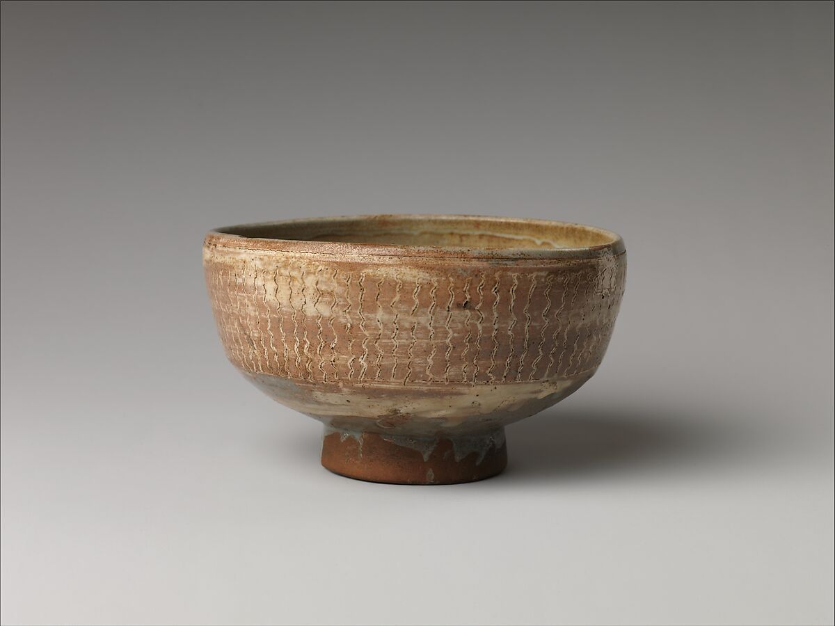 - Medium:Clay decorated with a mishima design of inlaid slip under a transparent glaze (Mino ware, Shino type)