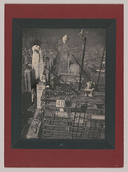 - Medium: Cut and pasted printed papers, black masking tape on paperboard with dark red facing paper
