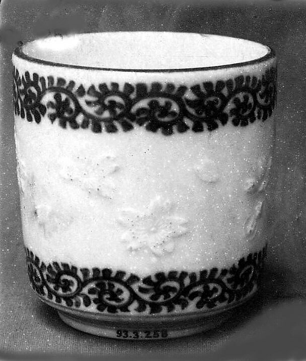 - Medium: White porcelain with designs in relief and decorated with blue under the glaze (Hirado ware)