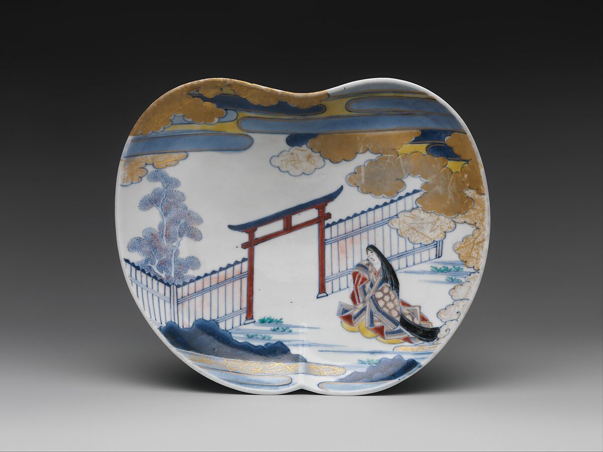 - Title: Dish with Design of Court Lady by the Gate of a Shinto Shrine