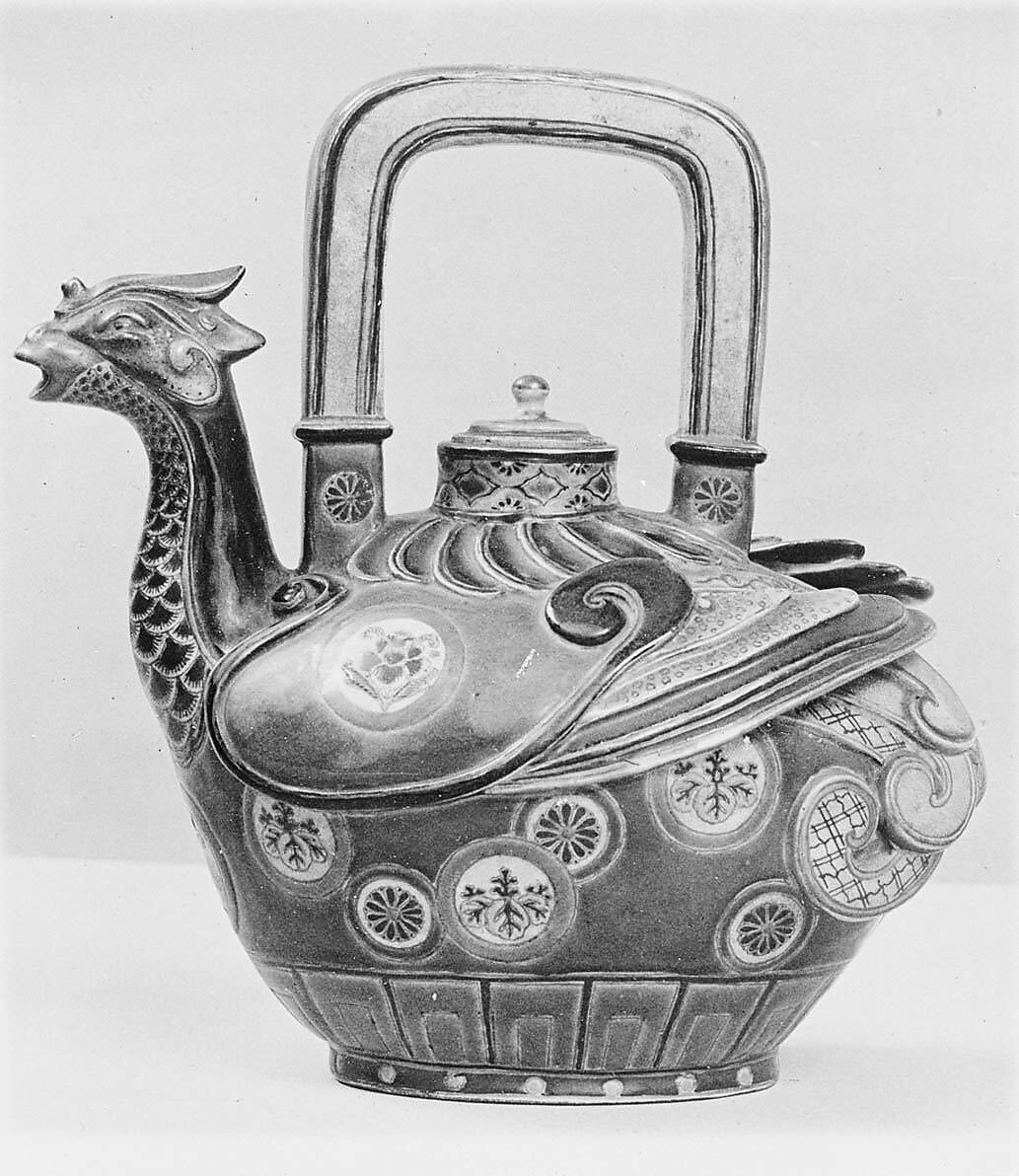 - Medium:Clay covered with a transparent crackled glaze and decorated with enamels, iron red and gold (Hizen ware, Kutani type)