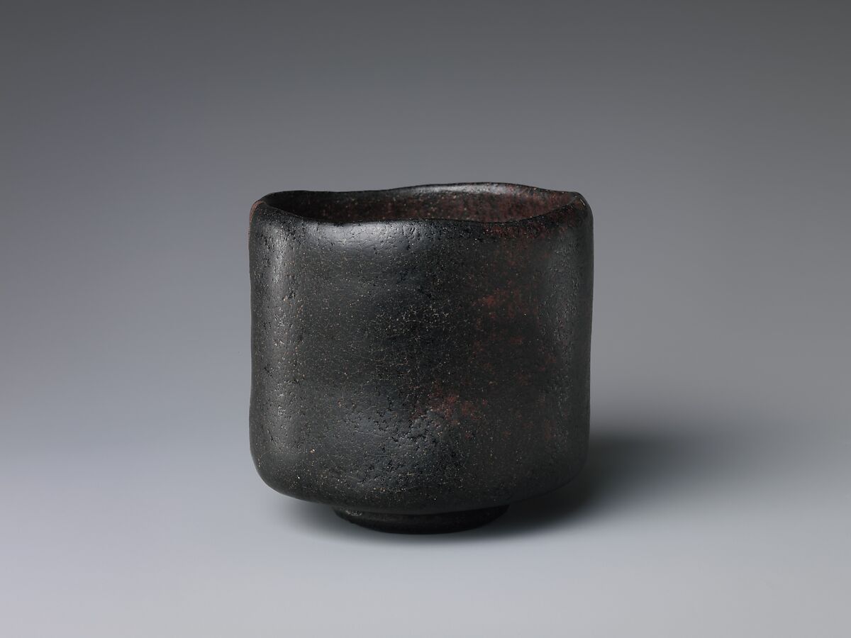 Raku ware is a type of ceramic highly esteemed in the Japanese tea ceremony. It is a lightweight glazed earthenware molded by hand rather than thrown on a potter's wheel. The clay is rough and unpretentious, covered in an opaque glaze, as we see here. Raku ware could be fired in small, indoor kilns, which contributed to its popularity in the city of Kyoto, a major tea center. It is traditionally associated with the Raku family of potters, which traces its lineage back to the time of the famous tea master Sen no Rikyū, and which is still producing Raku ware today.