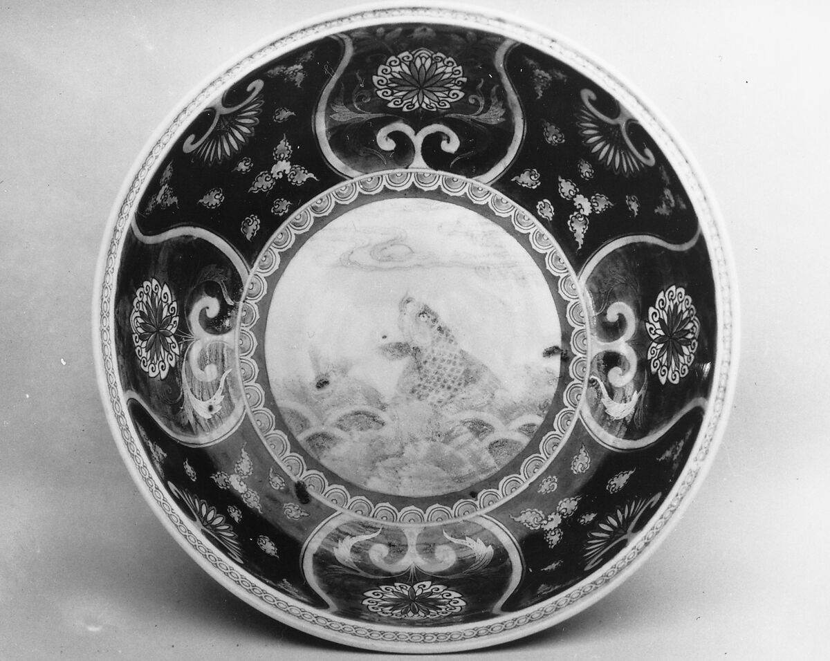 - Medium: Porcelain decorated in blue under the glaze and colored enamels; (Arita ware, Imari style)