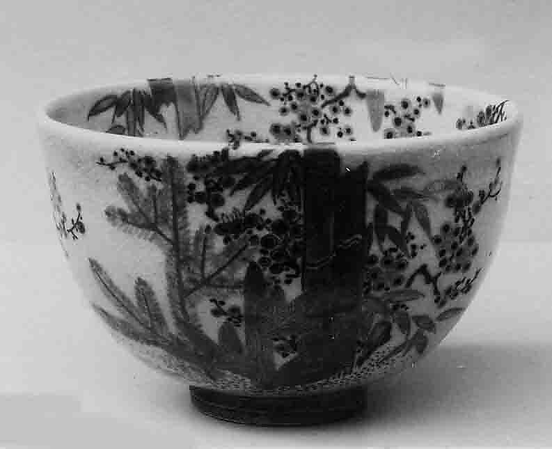 - Medium: Faience, glazed and crackled; covered with colored enamels (Kyoto ware)