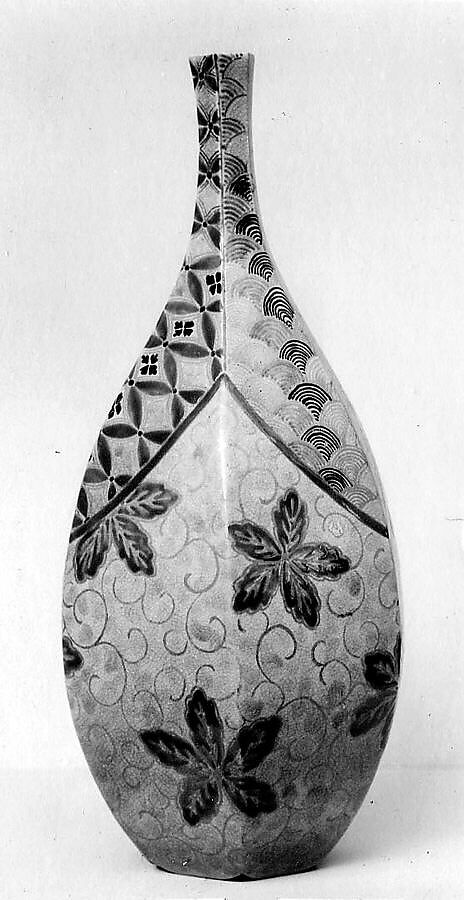 - Title: Sake Bottle with Design of Leaves, Vines, and Waves
