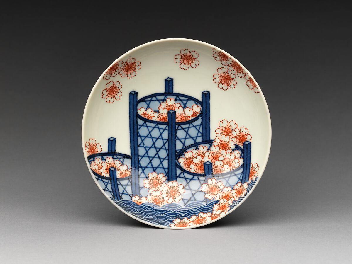 - Medium: Porcelain painted with cobalt blue under and red enamel over a transparent glaze (Hizen ware, Nabeshima type)