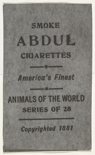 - Publisher:Issued by Abdul Cigarettes (American)