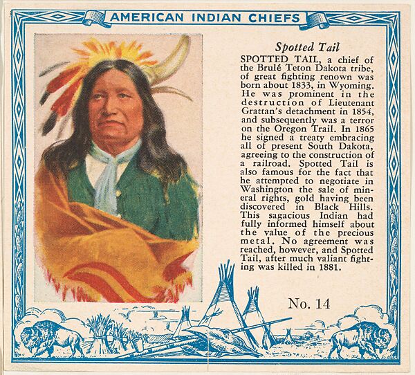 Card No. 14, Spotted Tail, from the Indian Chiefs series (T129) issued by Red Man Chewing Tobacco