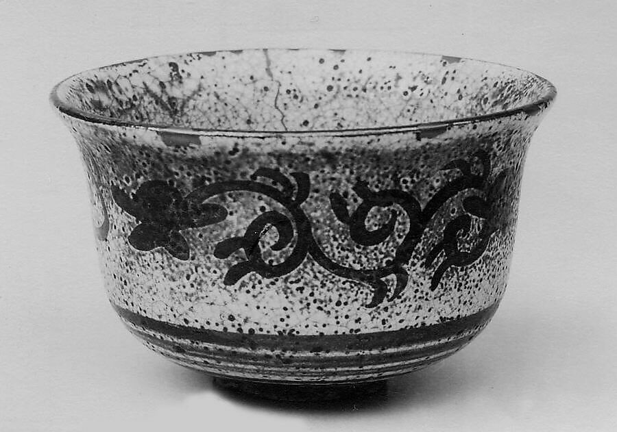 - Medium:Clay, much pitted; glaze, crackled on inside of bowl; thin and showing brown through (Mino ware, Shino type)