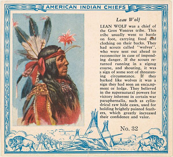 - Title:Card No. 32, Lean Wolf, from the Indian Chiefs series (T129) issued by Red Man Chewing Tobacco