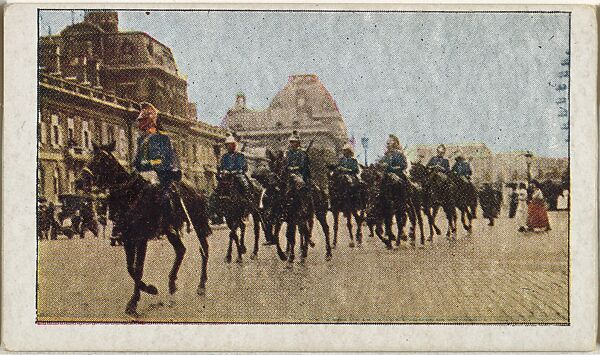- Title:Card No. 21, French Dragoons Off to the Front, from the World War I Scenes series (T121) issued by Sweet Caporal Cigarettes