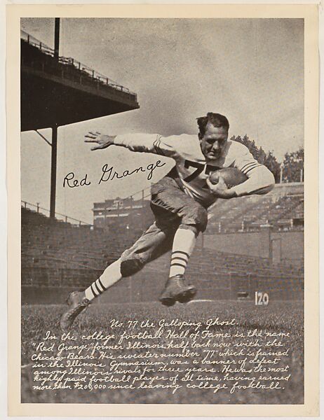 - Title: Red Grange, from the "Baseball and Football" set (R311), issued by the National Chicle Company to promote Diamond Stars Gum