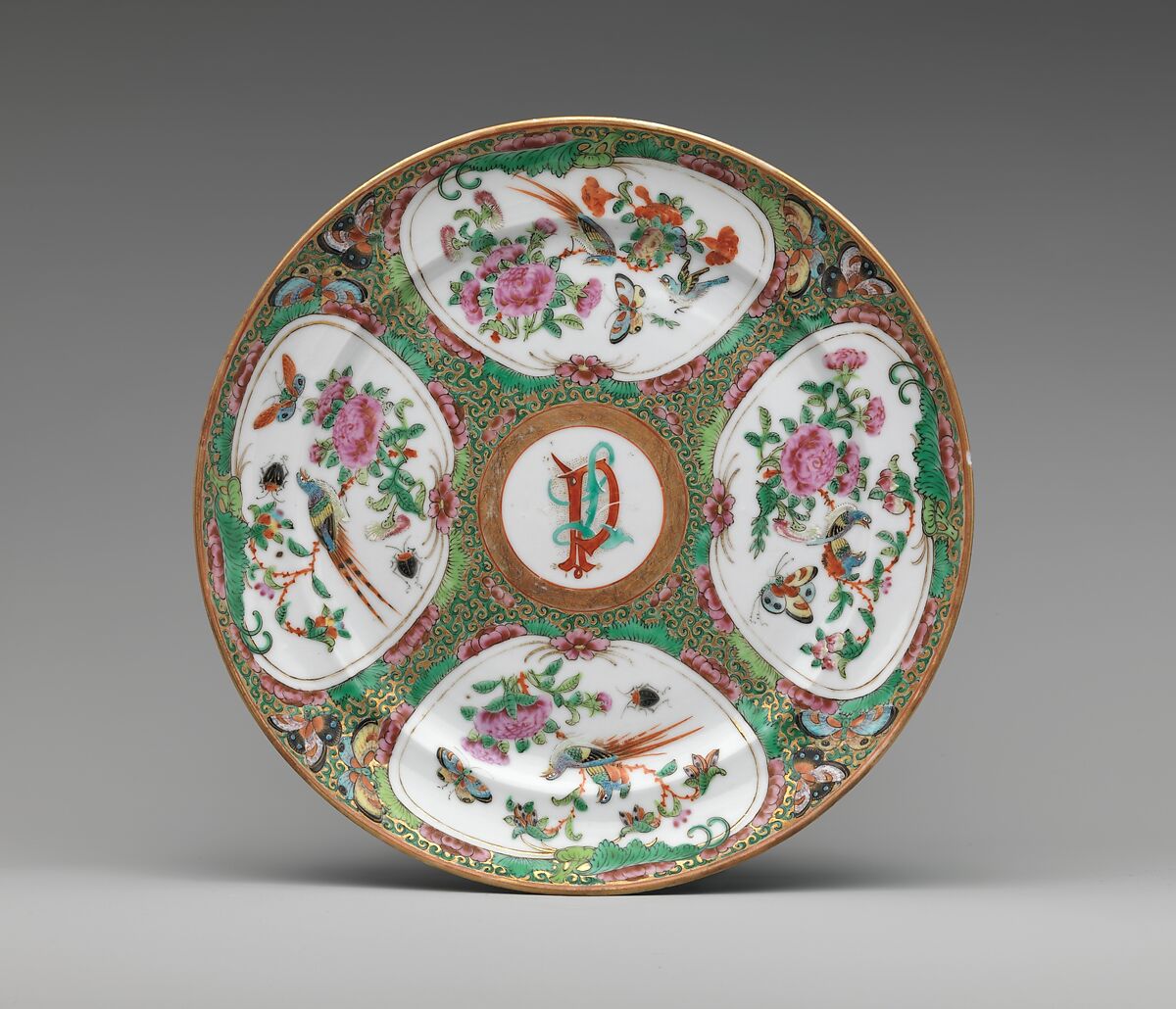 A Providence, Rhode Island merchant, Daniel Paine, ordered this dinner service for his wife, Louisa Paine, in the early nineteenth century. Her initials decorate the cups, saucers, dishes, plates, platters and tureens that compose the service.