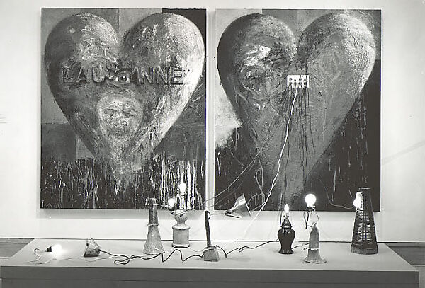 - Medium: Oil, enamel, wood, and electrical outlets on two plywood panels, with eight cast aluminum, painted ceramic lamps