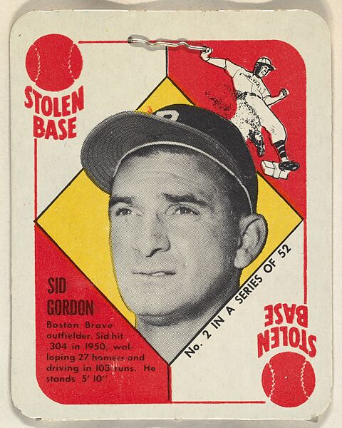 - Title:Card Number 2, Sid Gordon, Outfield, Boston Braves, from the Topps Red/ Blue Backs series (R414-5) issued by Topps Chewing Gum Company