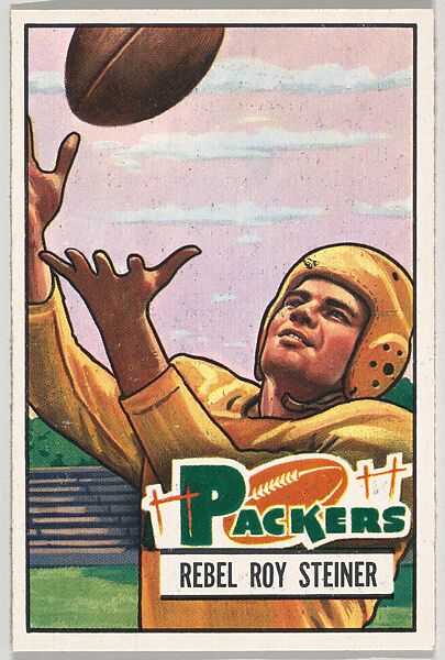 - Title: Card Number 16, Rebel Roy Steiner, End, Green Bay Packers, from the Bowman Football series (R407-3) issued by Bowman Gum