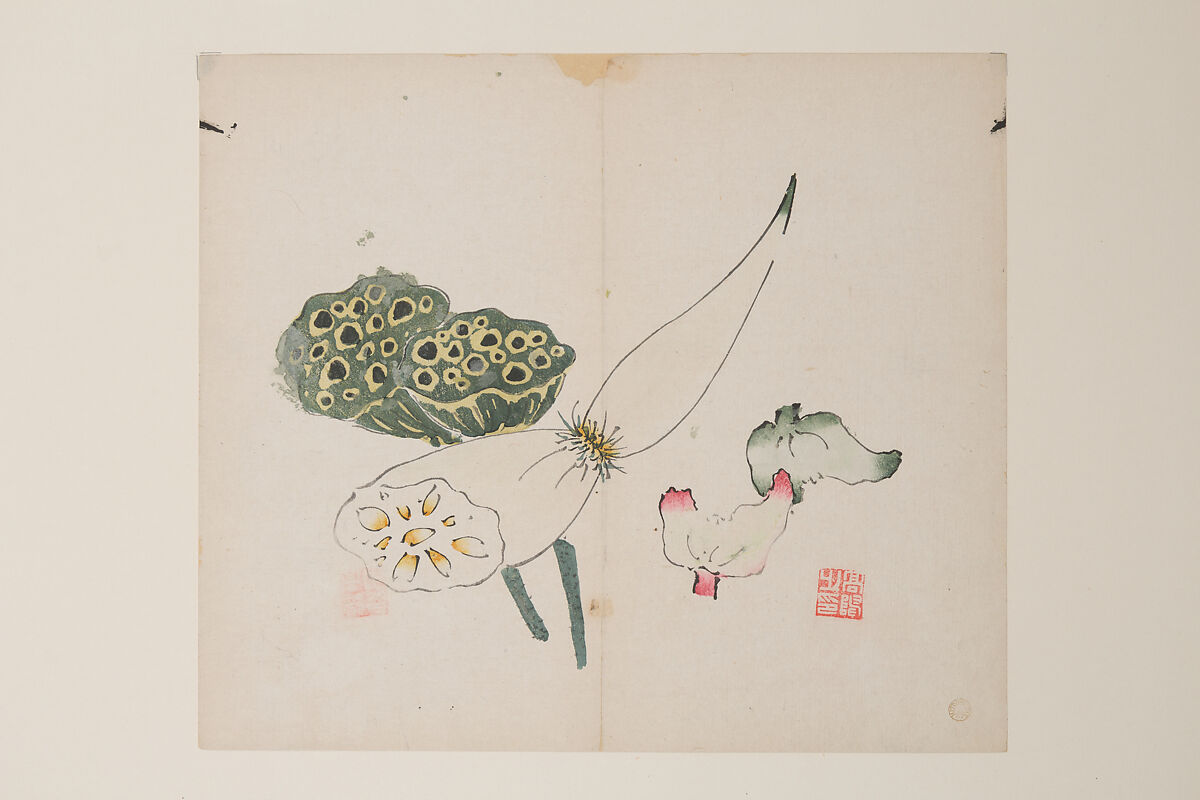 The Ten Bamboo Studio Manual of Painting and Calligraphy is one of the earliest and finest examples of color printing from China. The book, which served as both luxury object and guide for the aspiring painter, compiles familiar images from Chinese art, especially flowers, rocks, birds, and bamboo. The examples chosen for this display feature bird-and-flower subjects.
