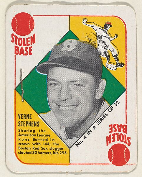 - Title:Card Number 4, Verne Stephens, Boston Red Sox, from the Topps Red/ Blue Backs series (R414-5) issued by Topps Chewing Gum Company
