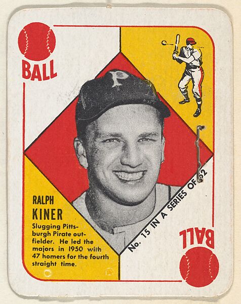 - Title: Card Number 15, Ralph Kiner, Outfield, Pittsburgh Pirates, from the Topps Red/ Blue Backs series (R414-5) issued by Topps Chewing Gum Company