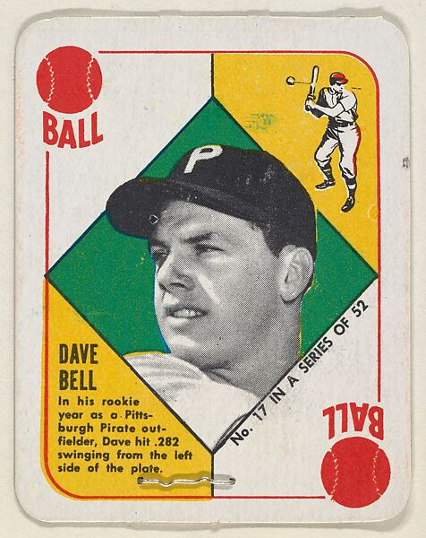 - Title:Card Number 17, Dave Bell, Outfield, Pittsburgh Pirates, from the Topps Red/ Blue Backs series (R414-5) issued by Topps Chewing Gum Company