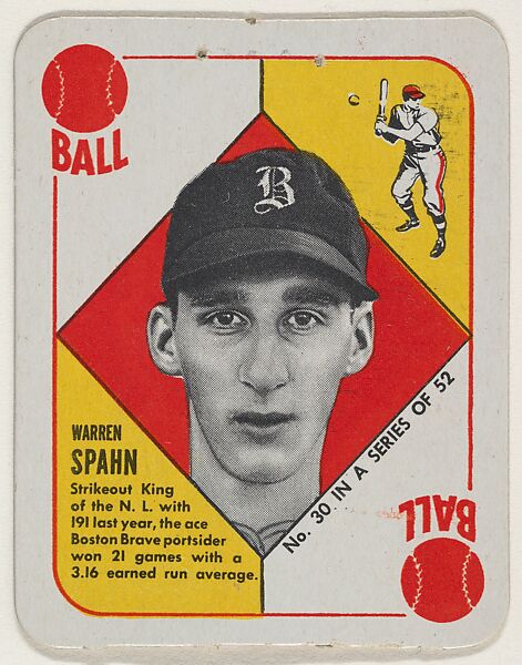 - Title: Card Number 30, Warren Spahn, Boston Braves, from the Topps Red/ Blue Backs series (R414-5) issued by Topps Chewing Gum Company