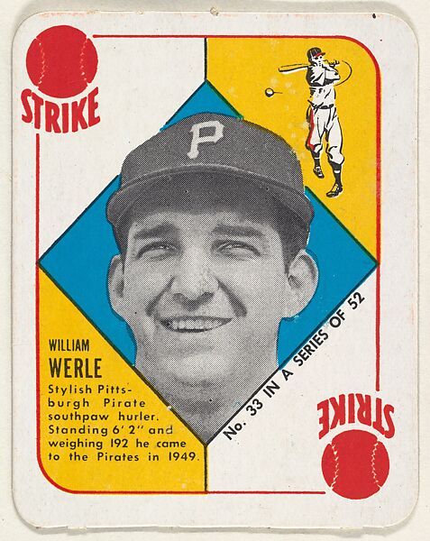 - Title: Card Number 33, William Werle, Pittsburgh Pirates, from the Topps Red/ Blue Backs series (R414-5) issued by Topps Chewing Gum Company