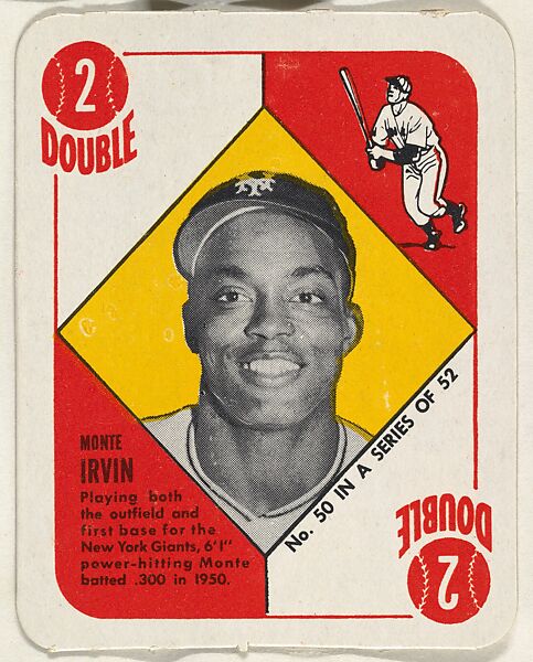 - Title:Card Number 50, Monte Irvin, Outfield and 1st Base, New York Giants, from the Topps Red/ Blue Backs series (R414-5) issued by Topps Chewing Gum Company
