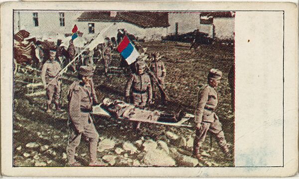 - Title: Card No. 47, The Very Latest Photograph Received in the United States from the Balkan-Turkish Seat of War, Showing Wounded Servians Being Removed from the Field After the Battle of Vronia, from the World War I Scenes series (T121) issued by Sweet Caporal Cigarettes