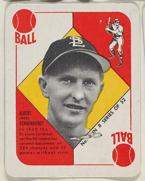 - Title:Card Number 6, Albert (Red) Schoendienst, 2nd Base, St. Louis Cardinals, from the Topps Red/ Blue Backs series (R414-5) issued by Topps Chewing Gum Company