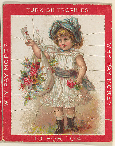 - Title: A Young Girl in a White Dress Holding a Sealed Letter and Flowers in a Blanket, from the Jigsaw Puzzle Pictures series (T76) issued by Turkish Trophies Cigarettes