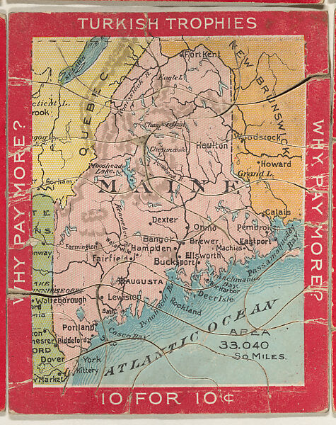 - Title: Map of Maine, from the Jigsaw Puzzle Pictures series (T76) issued by Turkish Trophies Cigarettes