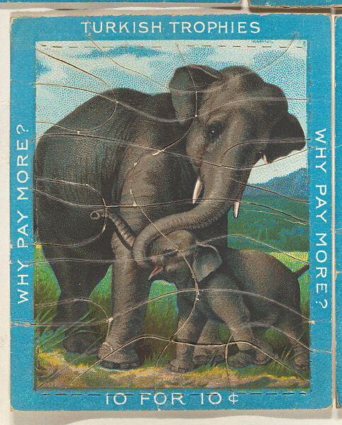 - Title:Elephants, from the Jigsaw Puzzle Pictures series (T76) issued by Turkish Trophies Cigarettes