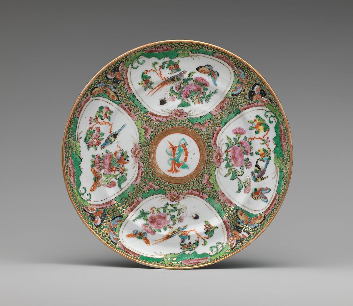 A Providence, Rhode Island merchant, Daniel Paine, ordered this dinner service for his wife, Louisa Paine, in the early nineteenth century. Her initials decorate the cups, saucers, dishes, plates, platters and tureens that compose the service.