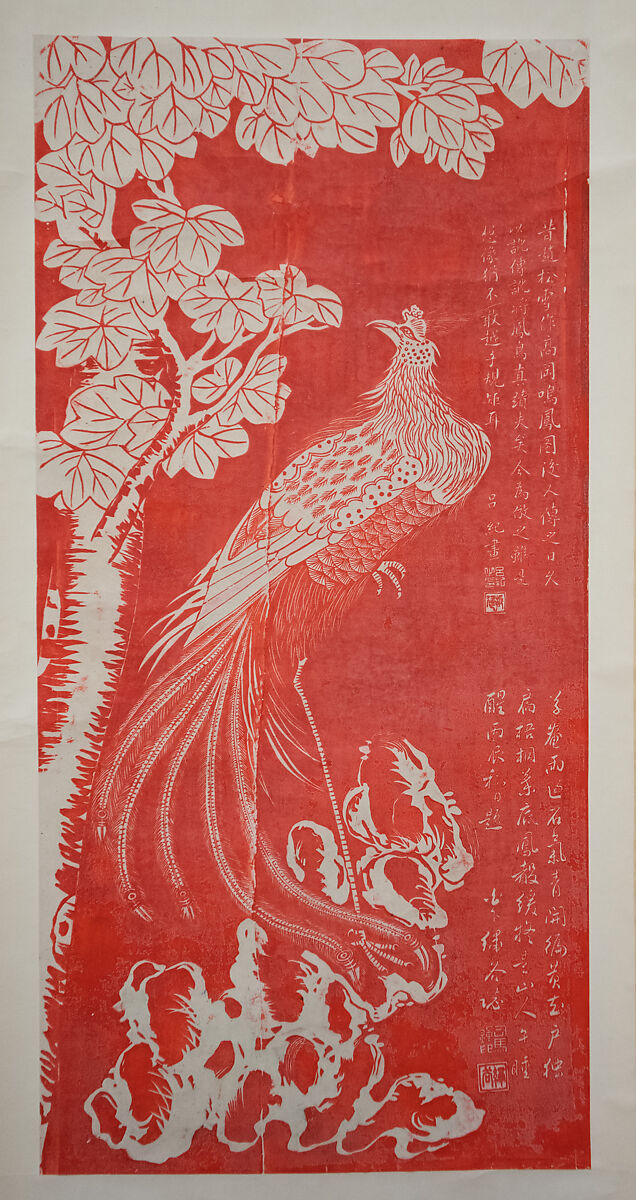 - 清/現代 佚名 呂紀僞款 鳳鳥圖版畫 軸