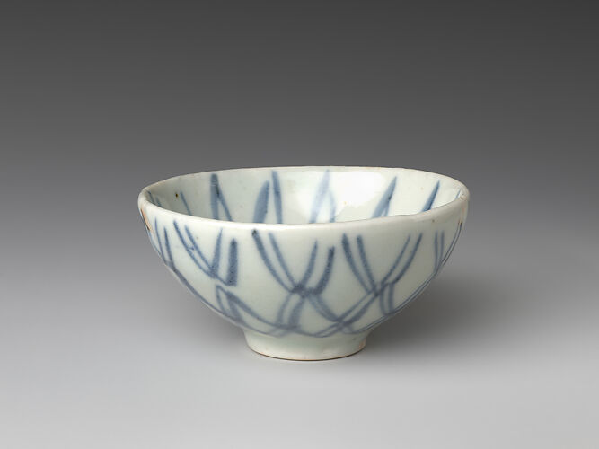 Buckwheat noodles (soba-kiri) were devised for common consumption in the late sixteenth century and became a staple of vegetarian meals offered at Buddhist temples. From the second half of the seventeenth century, soba gained popularity as light fare to be enjoyed with sake. By the late Edo period, there were several thousand soba vendors in Japan. Soba’s commercial proliferation, along with its regional variations in dipping sauces and the expansion of ceramic production in general, accounts for the large number of surviving cups and their remarkable diversity. With its bucket-like shape, the soba cup is a versatile vessel—ideal for serving not only dipping sauce but also side dishes and sake.